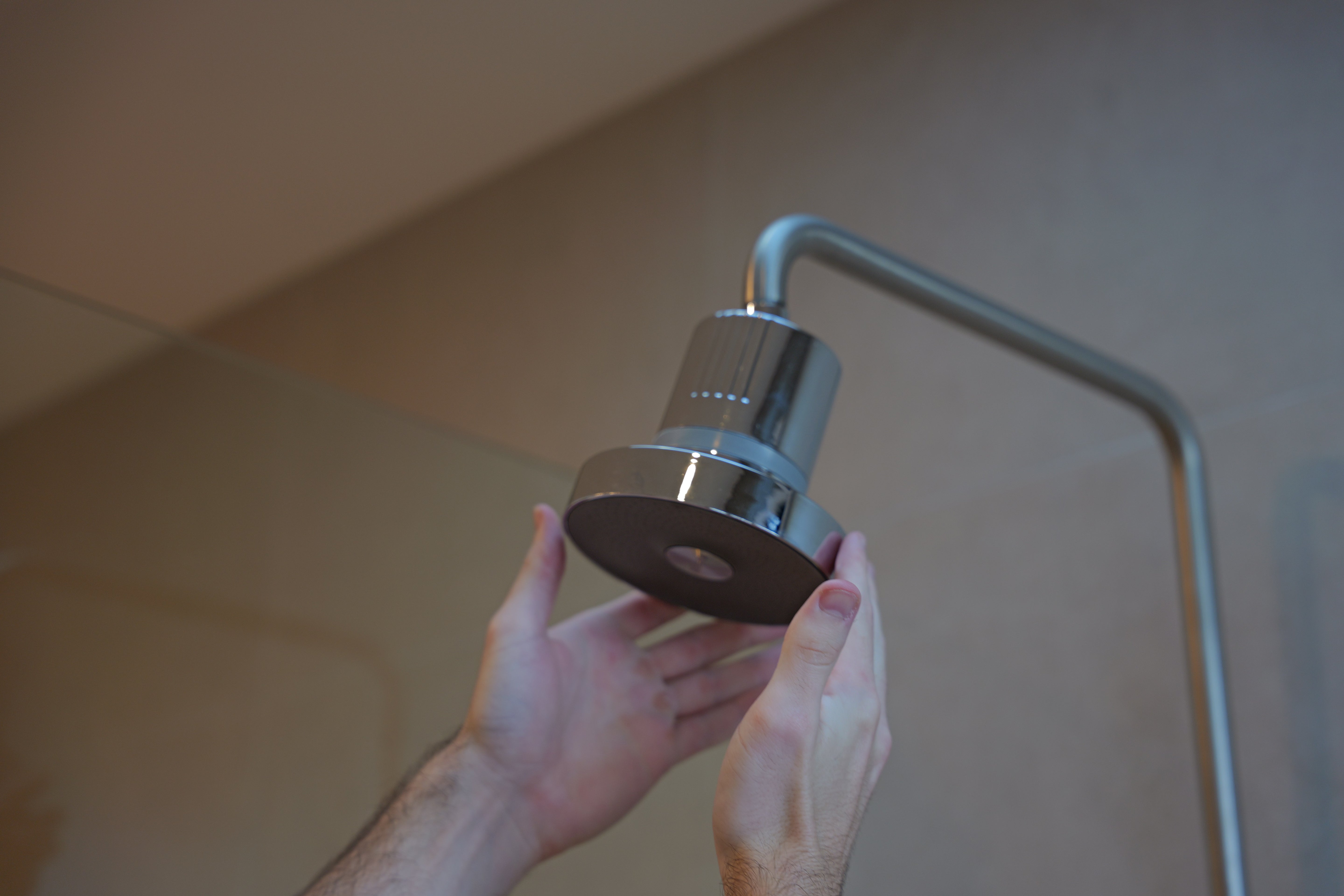 Step 2:Β Attach the shower filter to the shower arm by hand, ensure it’s secure.